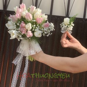 Bó hoa cưới 102 (kèm cài áo chú rể)