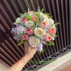 Bó hoa cưới 120 (kèm cài áo chú rể)