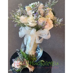 Bó hoa cưới 21 (kèm cài áo chú rể)
