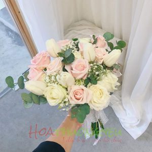 Bó hoa cưới 06 (kèm cài áo chú rể)