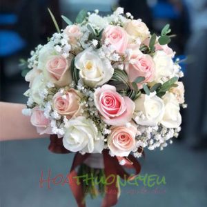 Bó hoa cưới 60 (kèm cài áo chú rể)